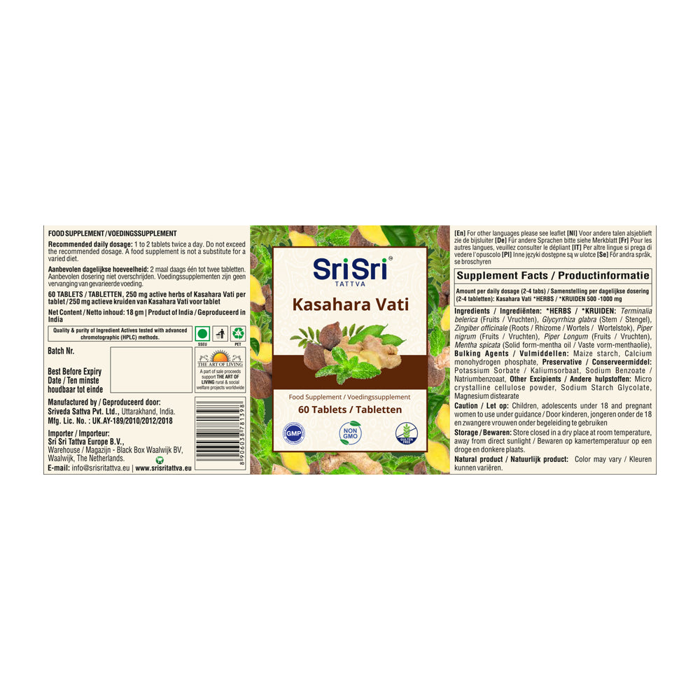 Kasahara Vati tablete sastoje se od Vibhitaki, Shunti, Maricha, Pippali i Mentha Spicata.