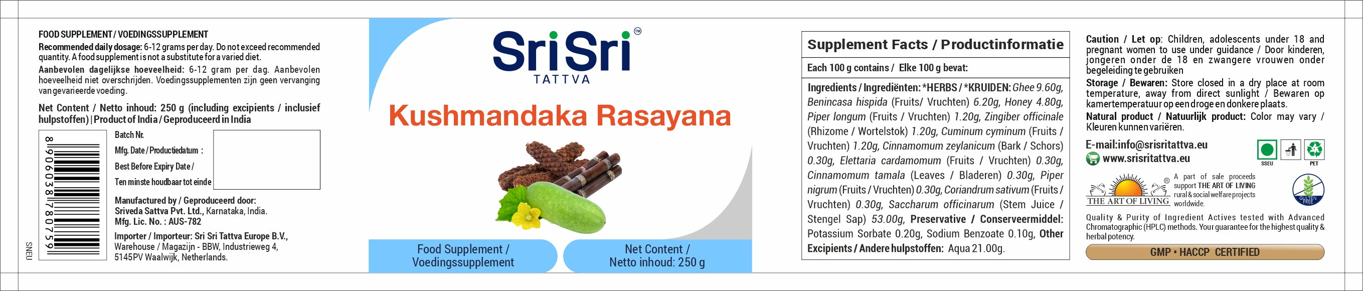Sri Sri Tattva jedan je od vodećih brendova u Ayurvedi i svaki naš proizvod, uključujući Kushmandaka Rasayana, pripremljen je korištenjem najboljih ayurvedskih praksi.