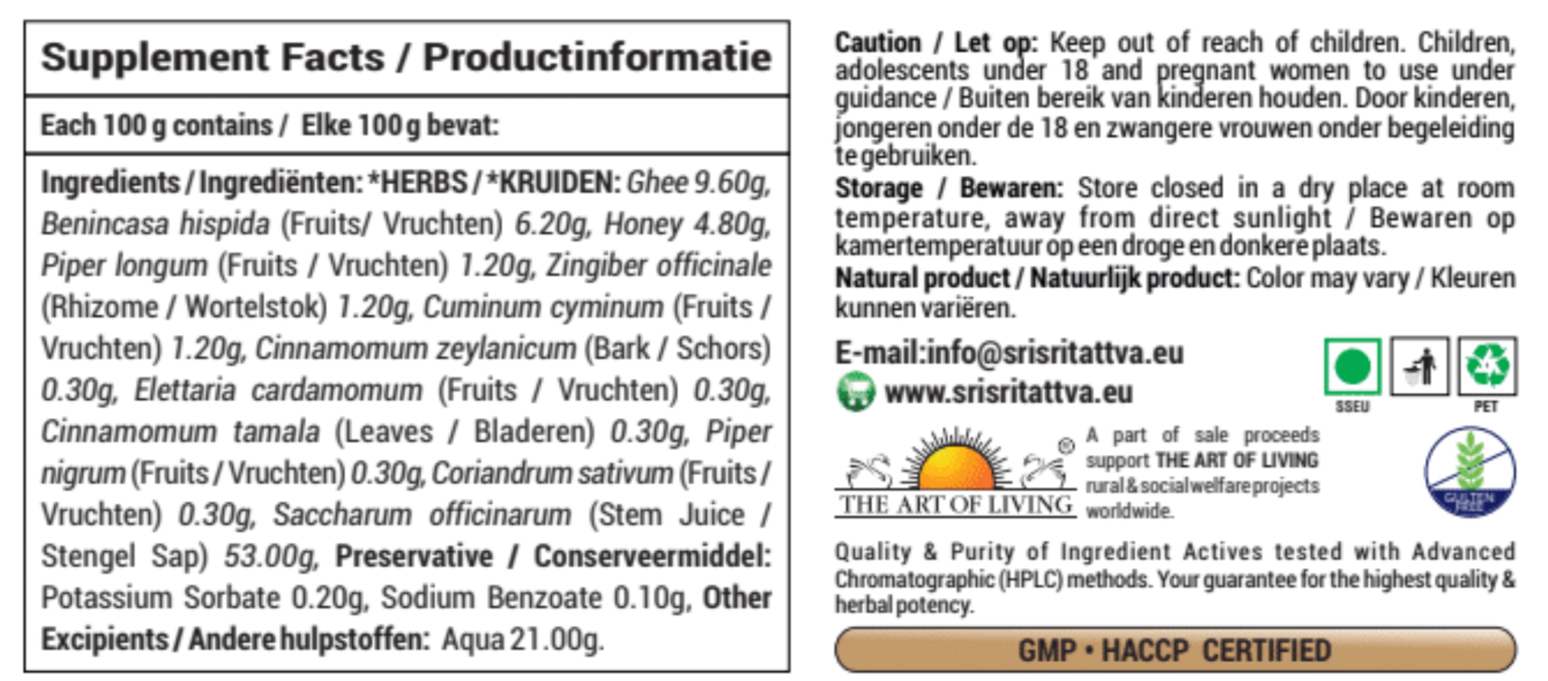 Ayurveda ima vrlo drugačiji pristup u odnosu na zapadnu znanost. Naši kupci moraju imati na umu da zbog europskih zakona i propisa na našoj web stranici nisu navedene sve primjene naših proizvoda. Informacije o zdravstvenim učincima proizvoda treba odvojiti od promocije proizvoda. Također, mnogi aspekti Ayurvede temelje se na načelima i perspektivama koje se fundamentalno razlikuju od zapadne znanosti.