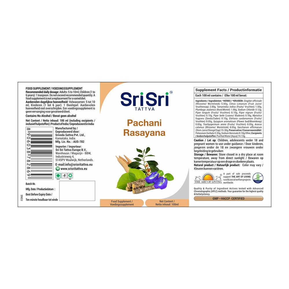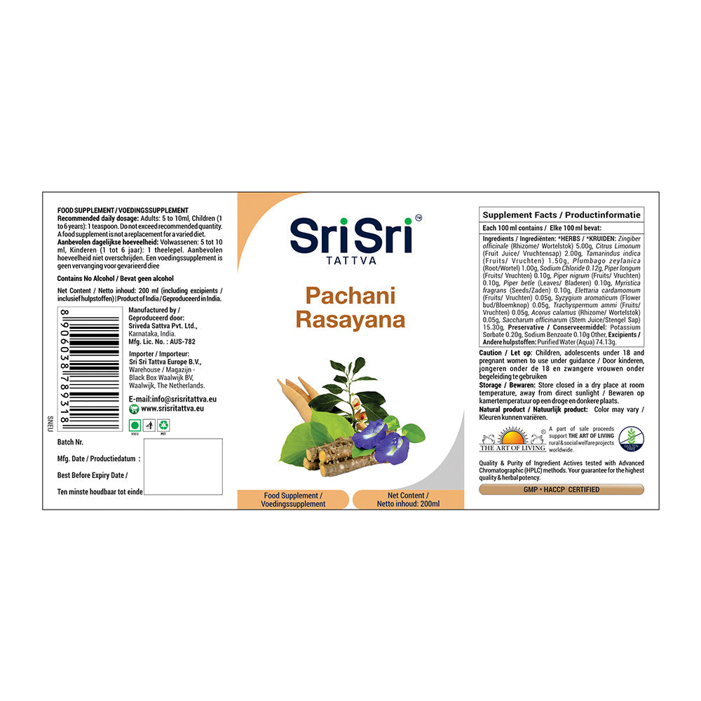 Đumbir je glavna komponenta Pachani Rasayane. Đumbir je korijen biljke poznat u Indiji za kuhanje i medicinske svrhe. Đumbir ima šest glavnih varijanti, a đumbir koji se koristi u ovom sirupu Pachani Rasayana, azijski tip đumbira koji je sočan i ima jaku aromu.