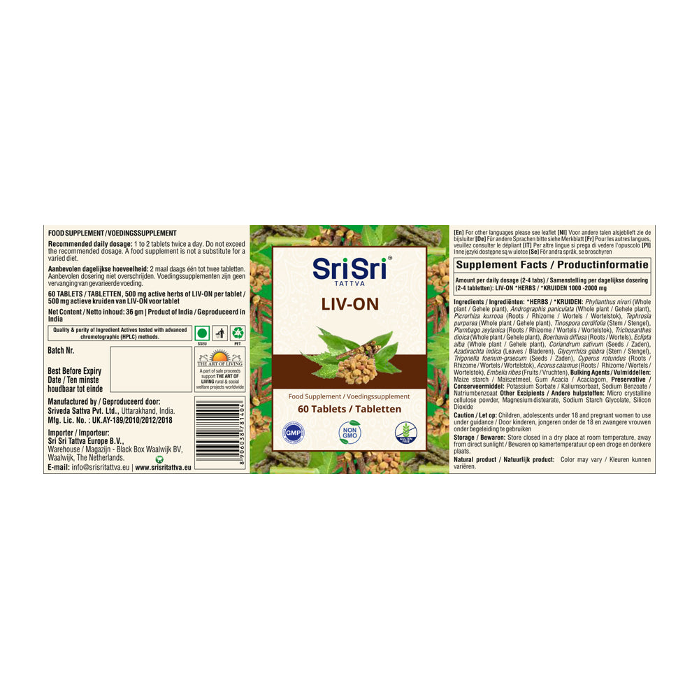 Sri Sri Tattva Liv-On Tablets is a herbal preparation made with a blend of 15 essential ayurvedic herbs. It is primarily composed of herbs such as Bhumiamalaki.